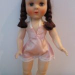 This is a really lovely doll from my own collection she is in excellent condition but has seen a little play as her hair is slightly mussy. Her original eyelashes are still in place on her blue sleeping eyes, her original plaits wig is in its original Braids but a little mussy in the top of her head . She has even lovely colouring in her cheeks but this is not obvious in my pictures. Coming to her new Mummy wearing a beautiful factory made pink cord coat and matching bonnet that fits her perfectly. Underneath she wear her original mummy made dress in off white net/ lace she is also wearing white new/vintage Cinderella shoes and white vintage/new pants. She has been a treasured doll of mine but she now needs a new Mummy ( as I am getting older) .